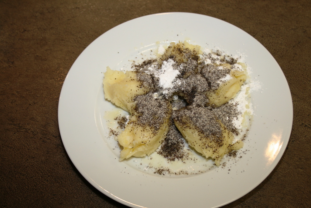 Místo máku a cukru můžeme použít na posypání strouhaný tvrdý tvaroh. Výborné jsou také polité klevelou ze švestek.