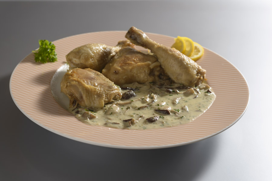 Jemná chuť na másle dušeného kuřete je ještě více podtržena nenapodobitelným aroma hříbků a smetany. Velmi dobrý pokrm, který stojí za vyzkoušení.