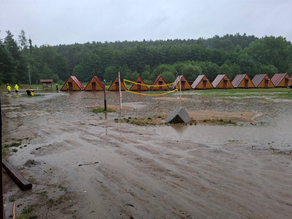 Hladina potoka kvůli vydatnému dešti vystoupala na třetí povodňový stupeň, tedy stav ohrožení. Tábory leží na břehu potoka a evakuováno z nich muselo být 238 dětí a dospělých.