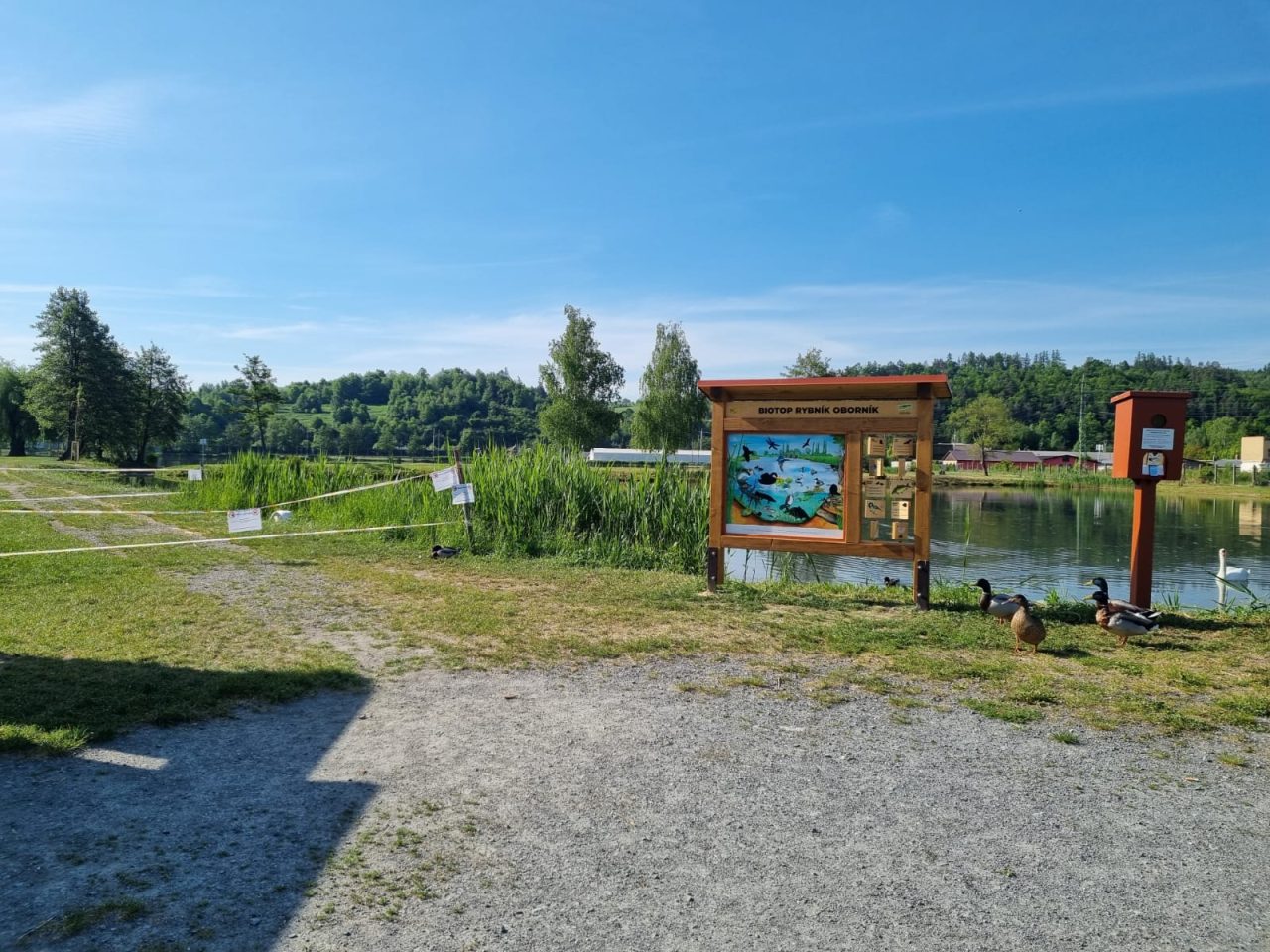 Eko servis zároveň u rybníka nainstaloval edukační tabule pro děti. „Na první tabuli je označeno, za jak dlouho se rozkládají různé odpady – třeba plechovka,“ doplňuje Doubravský. Tabule mají pomoci zvyšovat povědomí o ochraně přírody.