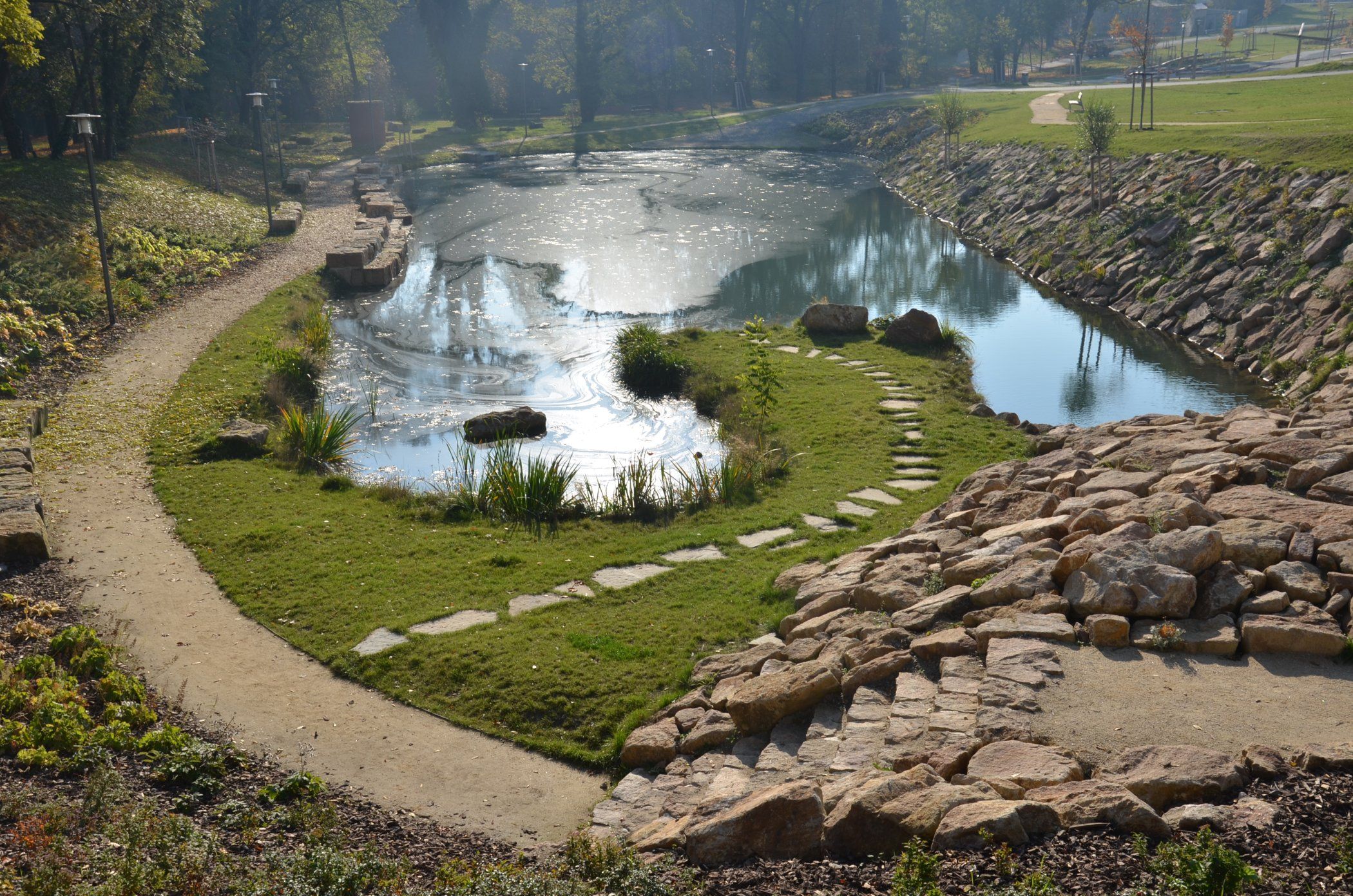 V novém parku na pražském Pohořelci byl založen i rybník