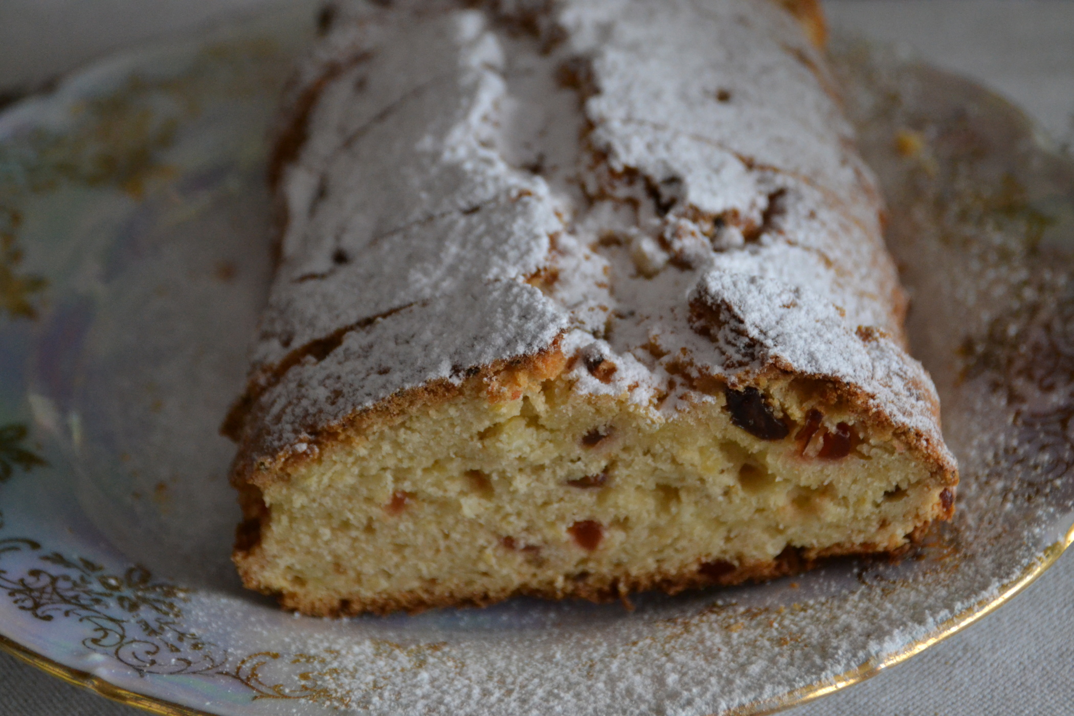 - Poté do těsta přidáme marcipán natrhaný na kousky, zbývající mouky a 100 změklého másla, na závěr pak rozinky s kandovaným ovocem.